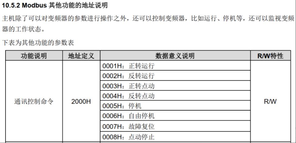 通訊控制字必須存儲(chǔ)在一個(gè)Modbus寄存器中,而每個(gè)寄存器都有一個(gè)地址。按位配置好我們所需的功能,將控制字的二進(jìn)制數(shù)值換算為16進(jìn)制,寫(xiě)入變頻器的控制字寄存器地址即可控制變頻器的啟停。