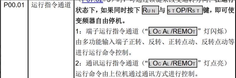 P00.01=1 運(yùn)行指令來(lái)自端子