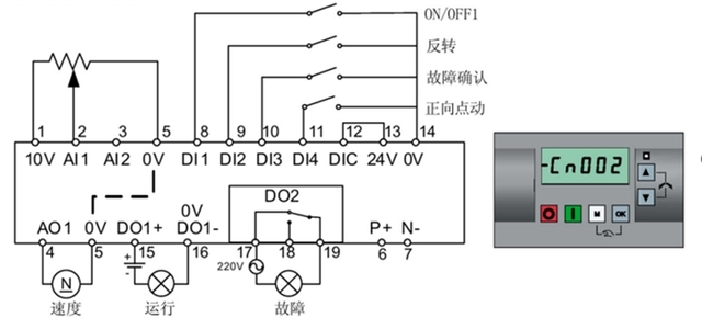 2. 連接宏參數(shù)設(shè)置Cn002通過端子控制