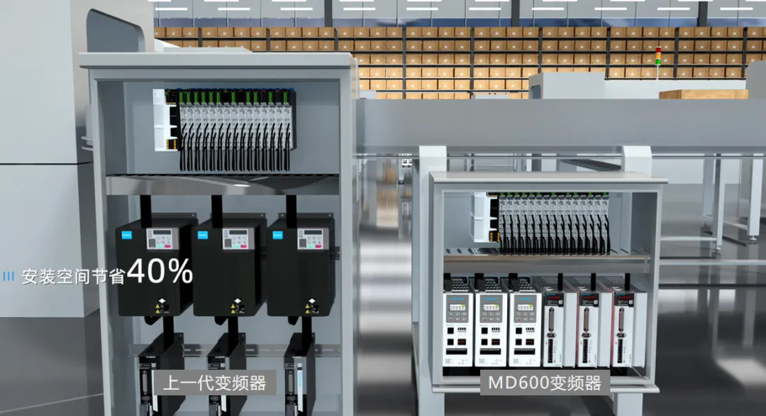 基于良好的散熱技術(shù),MD600整機(jī)體積縮小58%左右,節(jié)省40%左右電柜空間,大幅降低用戶(hù)電柜結(jié)構(gòu)材料等綜合成本。