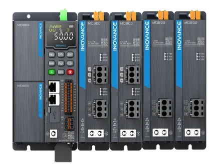 是匯川新一代低壓多點(diǎn)傳動系統(tǒng),其與AM610 / H3U 等PLC 高速總線組網(wǎng),實(shí)現(xiàn)一網(wǎng)調(diào)試,一網(wǎng)驅(qū)控,兼容異步及同步伺服電機(jī),搭載23 bit 絕對值編碼器,實(shí)現(xiàn)變頻驅(qū)動良好效果。