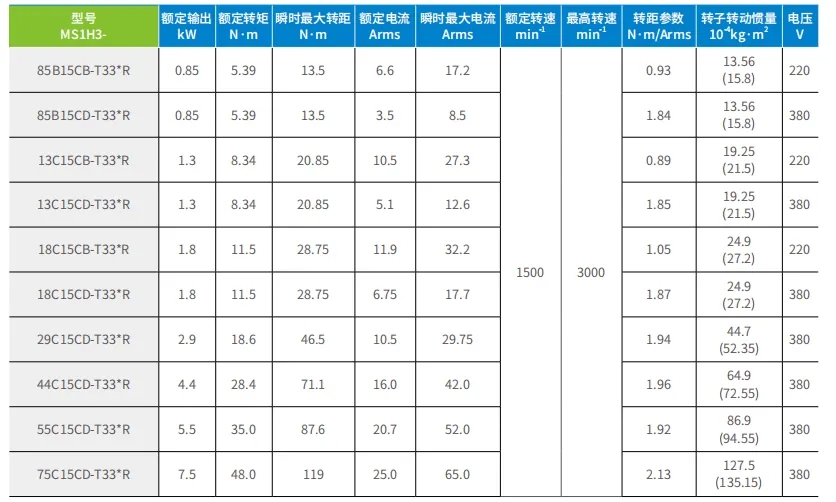 伺服驅(qū)動器和電機配置表