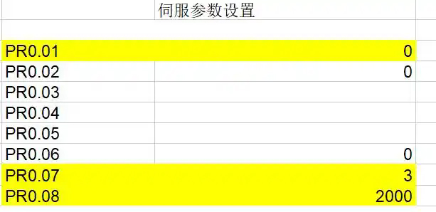 按圖紙接好線路通電檢查,信號(hào)無誤之后,我們需要給伺服設(shè)置參數(shù),按照機(jī)械結(jié)構(gòu),絲桿直連,絲桿導(dǎo)程20MM,設(shè)計(jì)定位精度0.01MM,所以我們?cè)O(shè)置伺服一轉(zhuǎn)脈沖數(shù)為2000pps,控制模式為脈沖+方向:具體參數(shù)如下